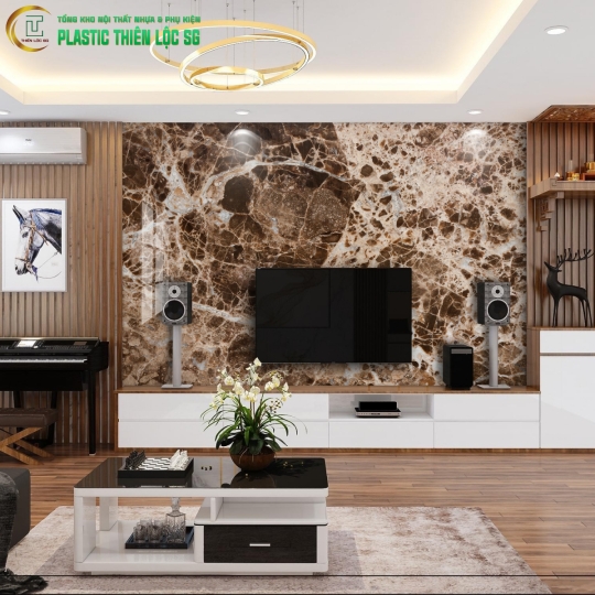 Thiên Lộc SG Plastic hân hạnh mang đến cho quý khách hàng Tranh Vân Đá Ceramic Vách Tivi Vân Đá Nâu Vàng đang phân phối tại Thiên Lộc
